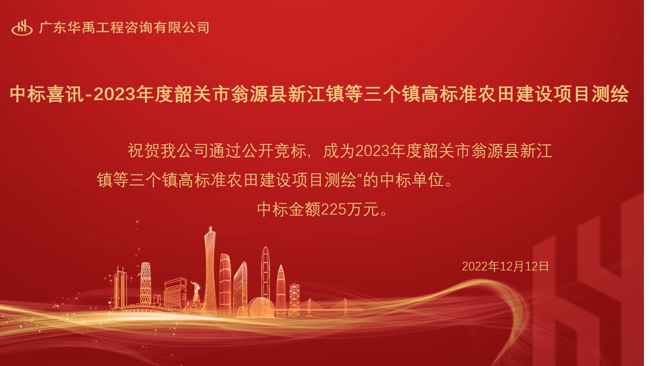 中标喜讯 - 2023年度韶关市翁源县新江镇等三个镇高标准农田建设项目测绘